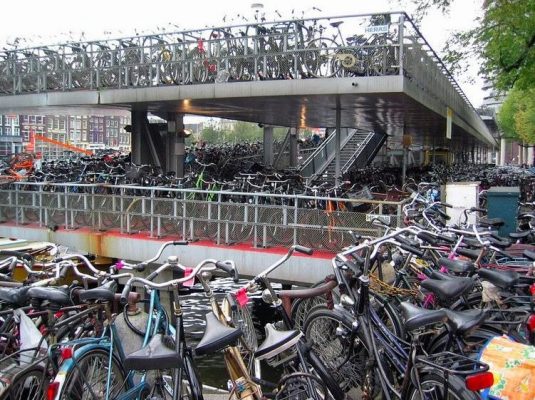 A bike parking structure right in front of the Amsterdam Central Station. As Mr. Litjens puts it “The typical Dutch bike is a traffic solution, but also creates problems. Where do you park 1.5 million of them?”